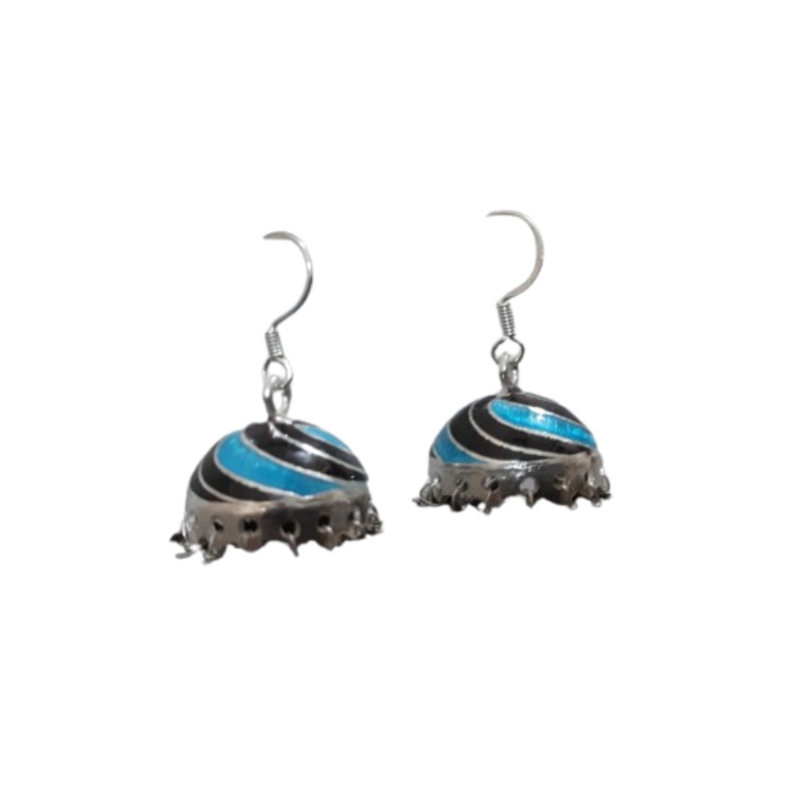 Stylish Black & Blue Striped Meenakari Silver Jhumkas