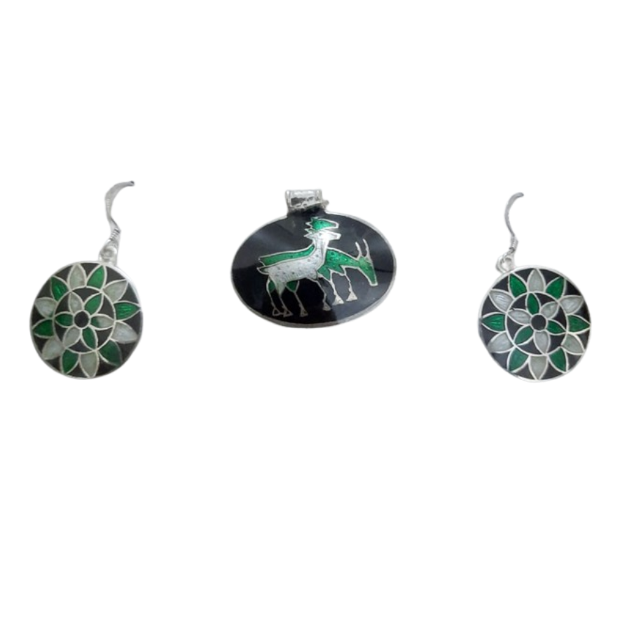 Stylish Meenakari Deer Design Silver Pendant Set (11 gm)