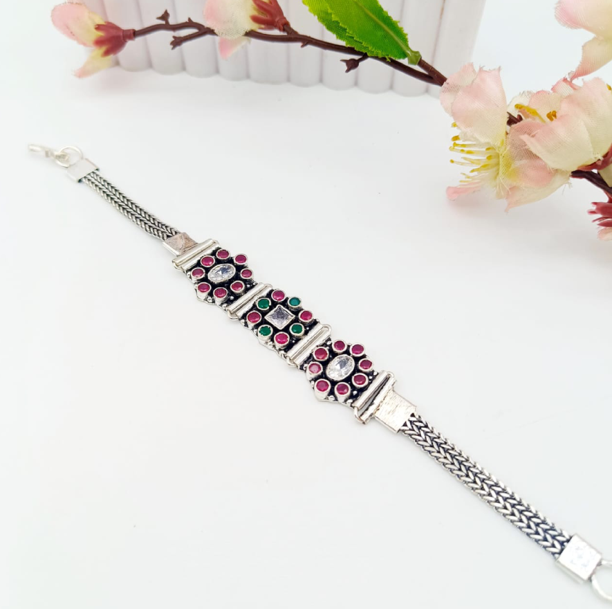 Elegant Wavy Sqaure Silver Bangle Bracelets (Set of 2)