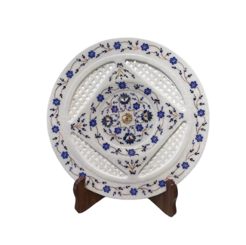 Hand-Inlaid Marble Decorative Plate – Circular Floral Motif